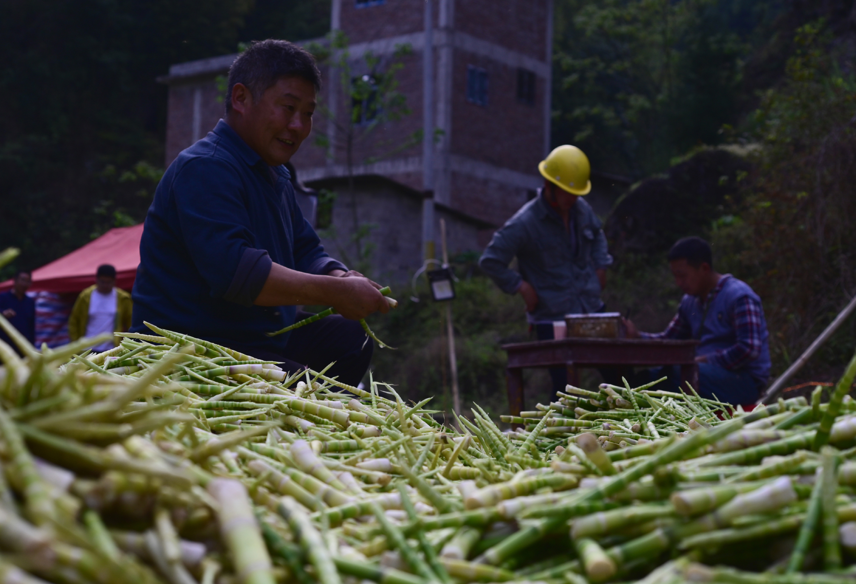 4月中旬,云南昭通大關(guān)縣天星鎮(zhèn)魚孔村,徐井貴和朱新燕小兩口,在海拔1800-2000米的原始山林里,搭起了棚戶,100畝的自家竹林在精心維護(hù)兩年后,今年收成更佳。“每天可以采200斤,今年價(jià)格比去年更好,干勁十足!”
