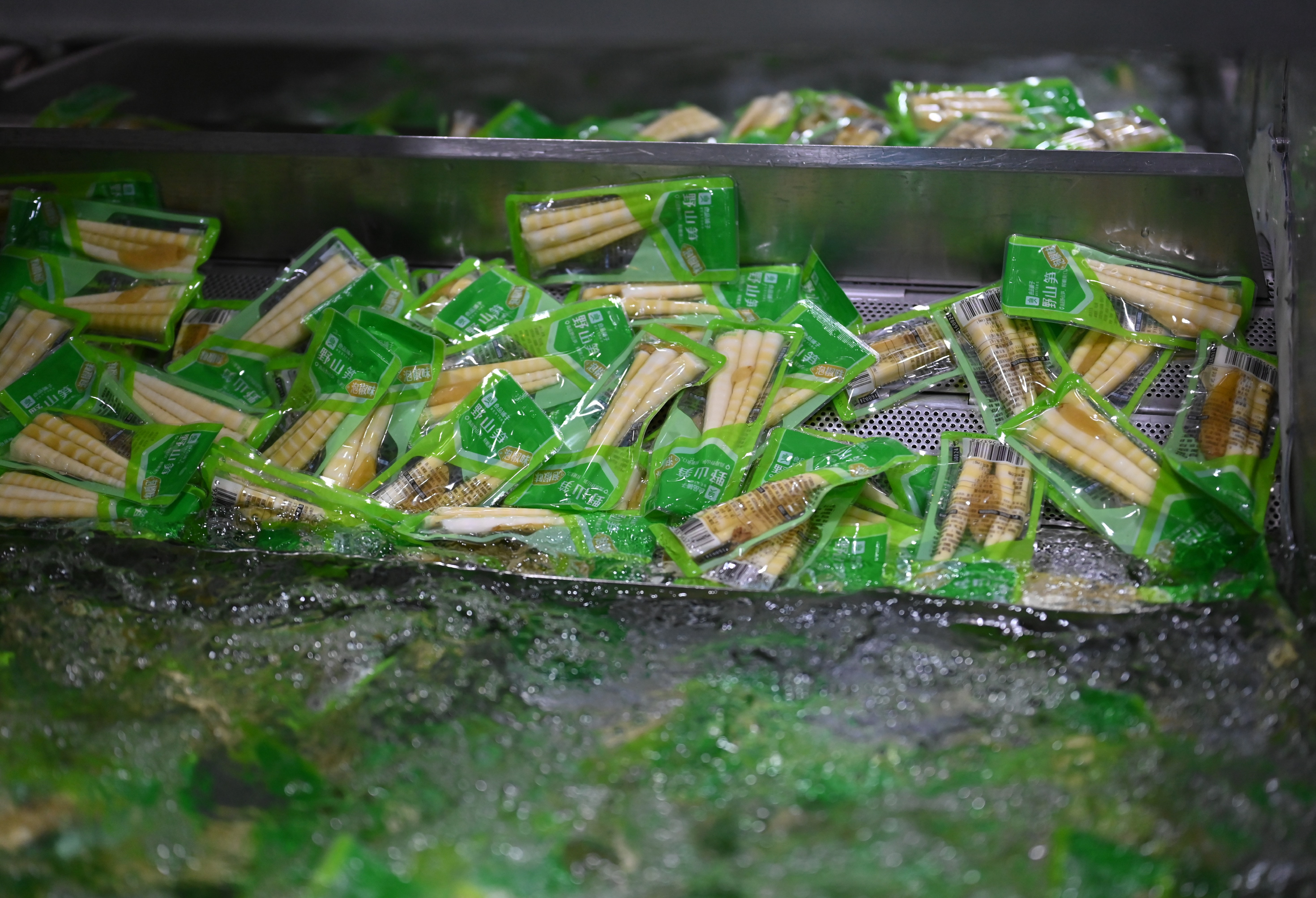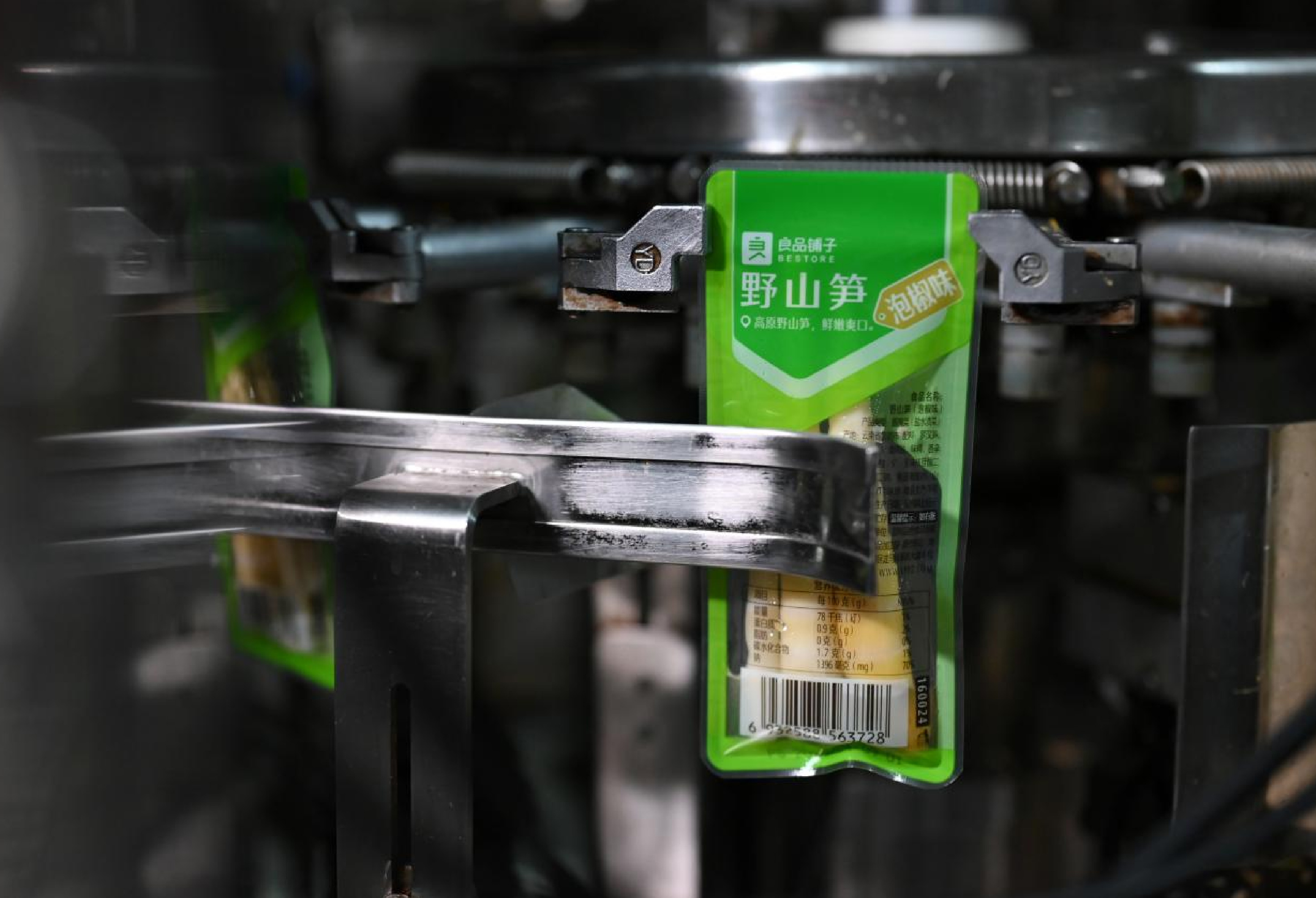 “一根20多厘米長的鮮筍,良品只取筍尖及以下8-13厘米,相當(dāng)于精華中的精華,一袋100斤脫掉筍衣的筇竹筍,大概30%可以用作良品鋪?zhàn)右吧焦S零食的原料。”大關(guān)縣天星鎮(zhèn)魚孔村收筍經(jīng)紀(jì)人鄢永康介紹,在當(dāng)?shù)氐募庸すS,經(jīng)過清洗、脫筍殼、壓榨去澀等簡單工藝處理后成為初級(jí)生產(chǎn)加工級(jí)別的半成品原料,第一時(shí)間送往位于昆明富民縣的良品鋪?zhàn)庸?yīng)商——昆明品世食品有限公司十萬級(jí)無塵智能車間。經(jīng)過殺青、腌制等工序,最大限度保持新鮮,再經(jīng)過脫鹽、熟化、清洗、調(diào)味、罐裝、巴氏殺菌等十幾道工序,保留山珍的原始風(fēng)味、確保食品安全,并佐以云南有名的小米辣,口感更加豐富、有層次。